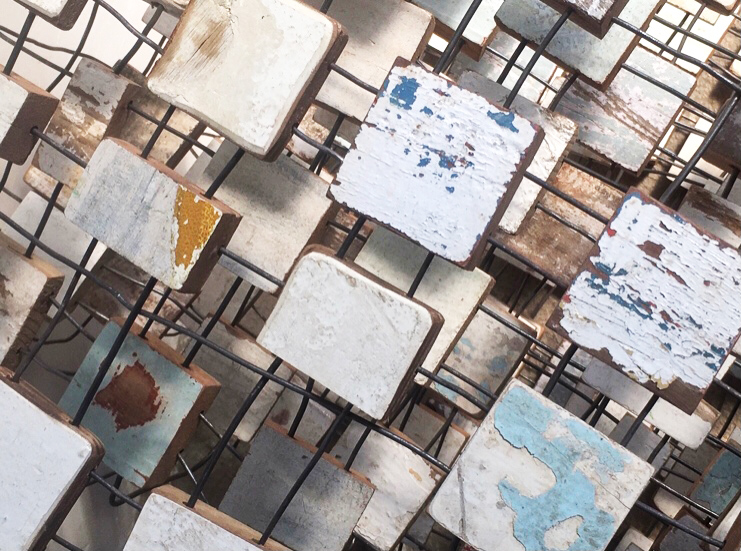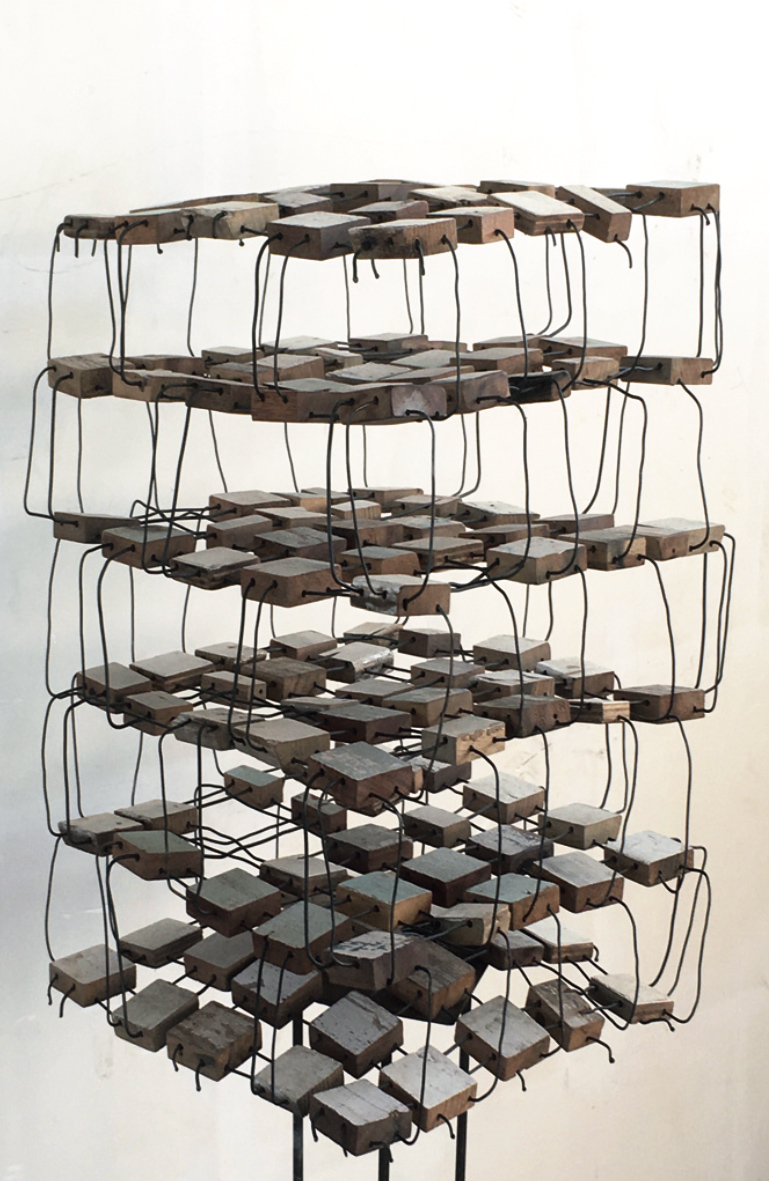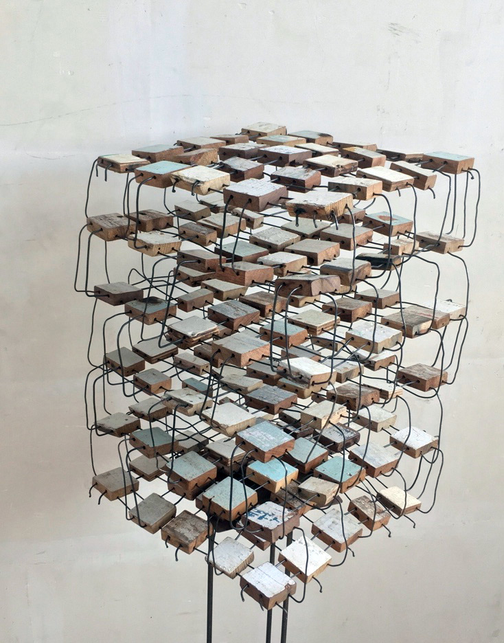 Fragments de bateaux et fil de métal — 80 × 50 × 50 cm.