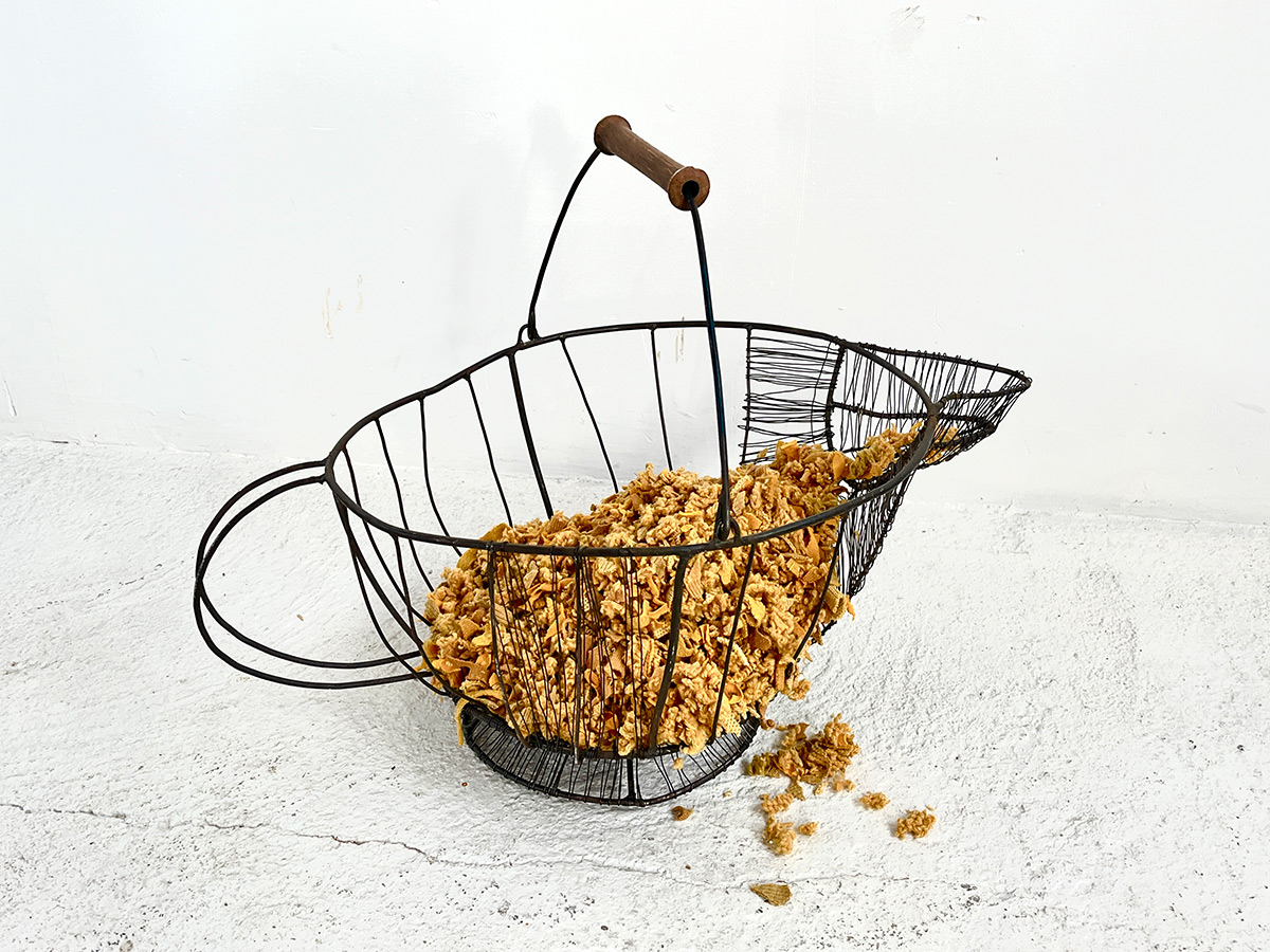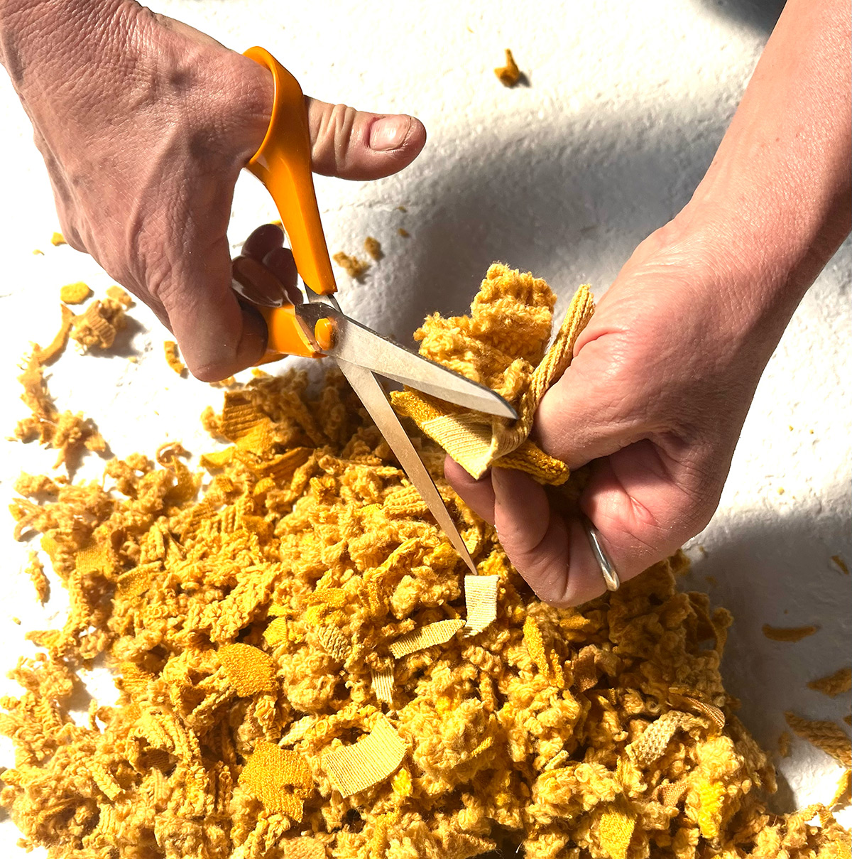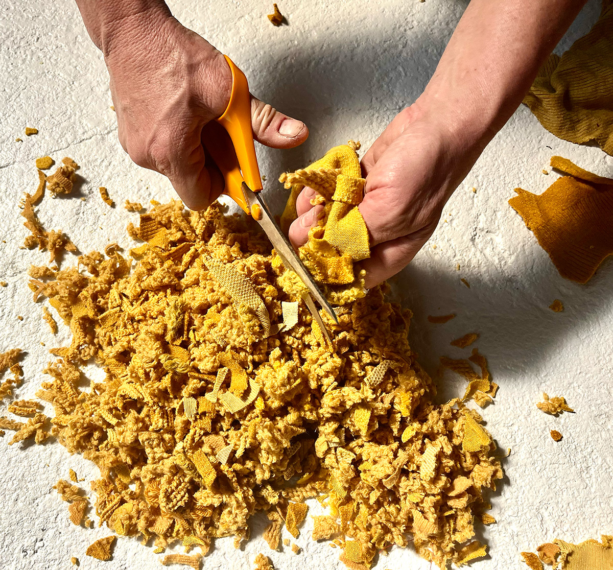 Des restes jaunes de Peau Commune naît une autre matière : découpée, pulvérisée, elle devient feu et moisson.