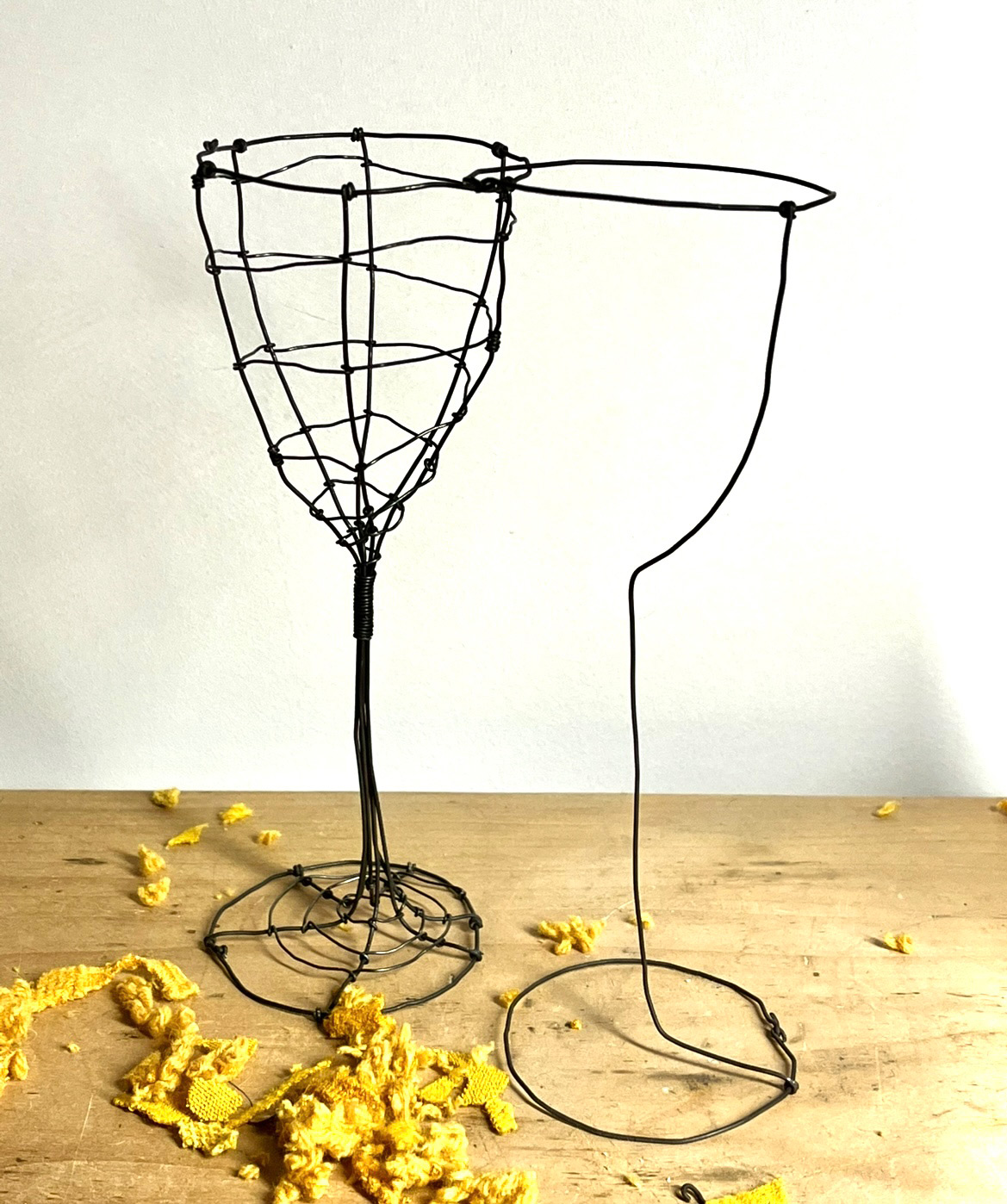 Deux verres tissés de métal se soudent, l’un formé, l’autre esquissé. Tout y reste à naître.