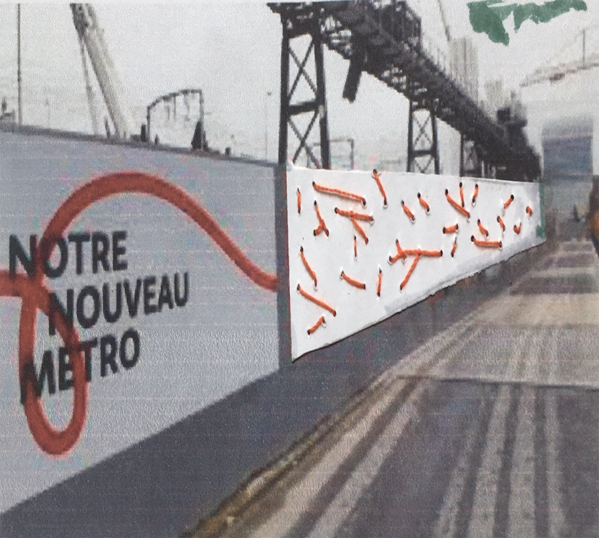 Ce va-et-vient dessine un maillage rouge, à l’image de celui que le nouveau métro inscrit dans le territoire : une traversée de frontières, une couture entre zones urbaines et humaines.